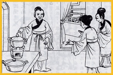 宋朝張待制夫人魯氏,乃申國夫人之姊,姊妹情深,將其女配妹之子呂榮公。 魯氏在其女兒未出家前,愛之如尚中珠,然對日常起居,管教必有制度,如一日三餐,許其多食飯蔬菜,魚肉則不准加進,用以養成儉僕習性。 女兒出嫁後,魯氏往妹家探視其女,偶然見及舍後另有鍋釜,大感不滿,責怪其妹曰: 豈可縱任兒輩私作飲食,致敗壞家法。 其女悔過,從此未敢為之,魯氏誠良母也。